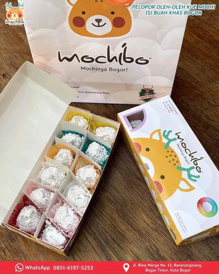 Mochibo, pelopor utama yang menawarkan sajian mochi khas Jepang yang kenyal dan stretchy, dengan sentuhan lokal yang unik. Isiannya buah-buahan khas Bogor seperti talas, pala, nanas, dan stroberi, membuatnya berbeda dengan mochi pada umumnya.