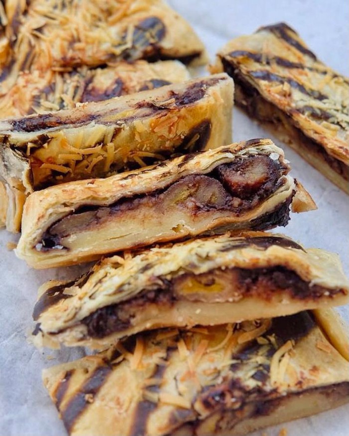 Isian favoritnya seperti apel, pisang cokelat, dan cokelat keju. Sementara varian gurih berupa sei sapi dan bakso, hingga varian unik seperti asinan dan martabak. Kombinasi pastry renyah dengan isian yang melimpah menciptakan cita rasa yang nikmat di setiap gigitannya.