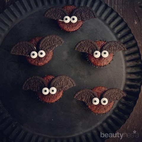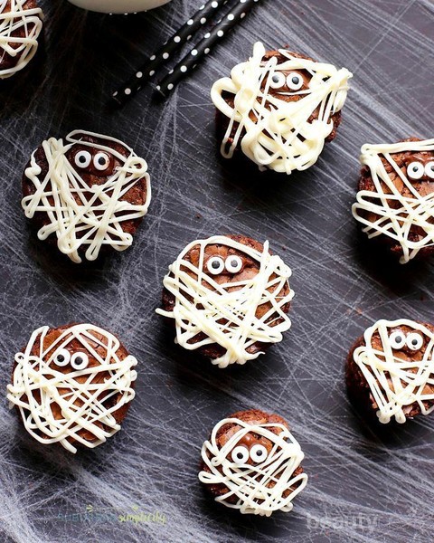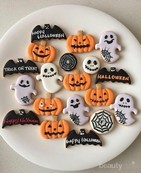 Untuk kamu yang suka bikin kue, kamu juga bisa sulap cake, brownies ataupun cookies jadi menyeramkan seperti monster, zombie, mummy atau penyihir dan sarang laba-laba.
