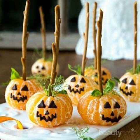 Dan contoh menu makanan atau snack Halloween di atas mudah banget kamu bikin. Kamu bisa memanfaatkan buah-buahan seperti jeruk yang didekor seperti labu, atau anggur hijau yang didekor seperti bola mata.