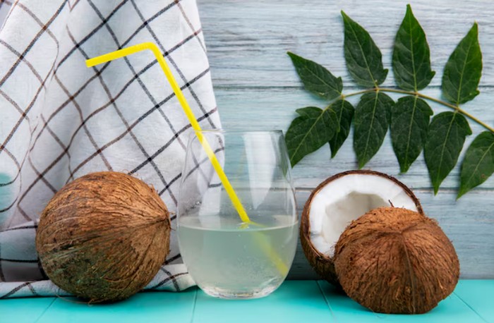 Air kelapa punya manfaat yang baik bagi hidrasi tubuh. Air kelapa adalah sumber elektrolit alami/Foto: freepik.com/jcomp