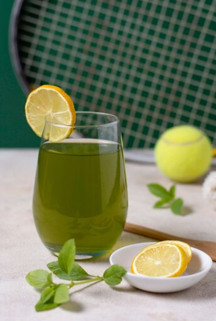 Teh hijau sangat baik untuk metabolisme tubuh. Kandungan katekin dalam teh hijau mampu membakar lemak perut dengan baik. Sedangkan lemon memiliki kandungan vitamin C yang akan mengoksidasi lemak hingga berkurang. Kamu bisa tambahkan satu sendok madu untuk memberikan rasa manis.