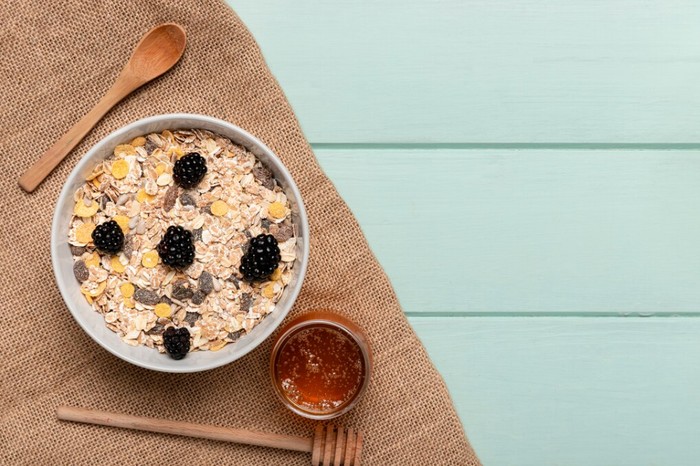 Overnight oat bisa jadi menu sahur yang praktis. Cara membuatnya dengan oat, susu, dan buah potong/Foto: freepik.com/timolina