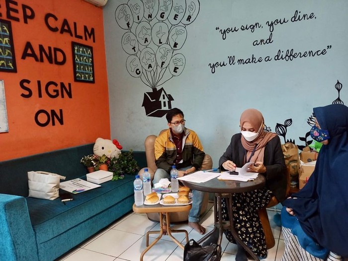 Ketika masuk ke area, para pengunjung akan menemukan banyak bahasa isyarat yang tertempel di setiap dinding maupun meja dekat kasir. Dari sini, kamu bisa belajar bahasa isyarat untuk bisa berkomunikasi dengan para karyawannya.