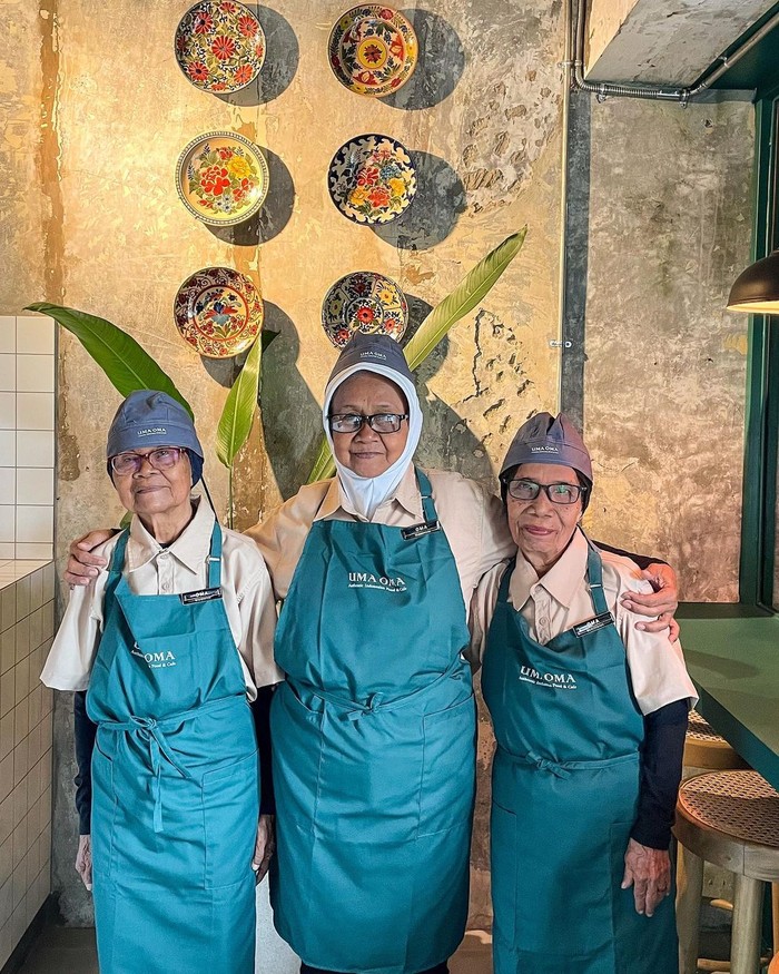 Konsep yang ditawarkan Uma Oma Cafe cukup unik dan viral di media sosial. Berlokasi di Jalan Melawai I, Jakarta Selatan, kafe ini memiliki pelayan lansia dan konsep inilah yang bikin para pengunjung terasa pulang ke rumah nenek.