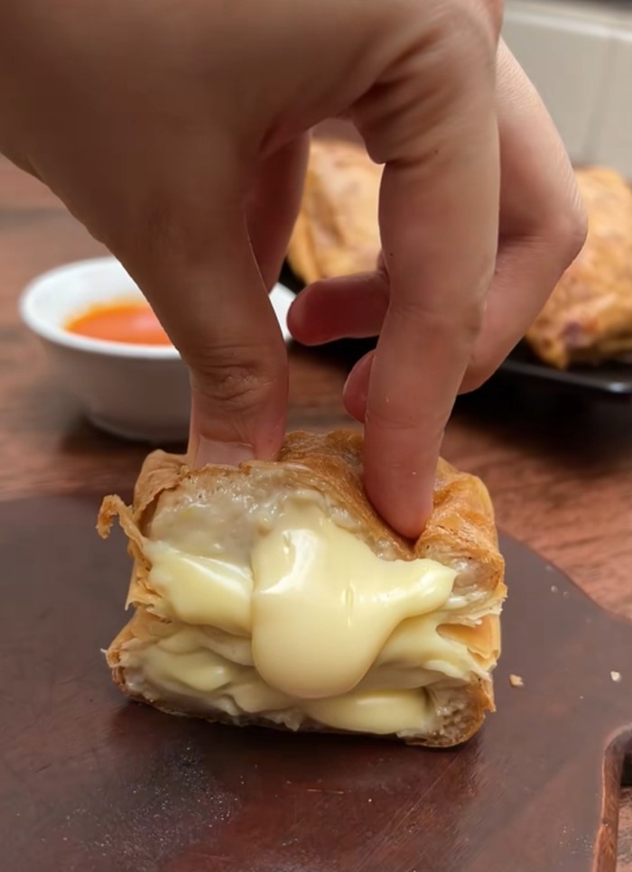 Dimsum goreng keju jadi makanan viral tahun ini. Bahkan ada dimsum goreng keju versi jumbo/Foto: tiktok.com/ashtlmrfh