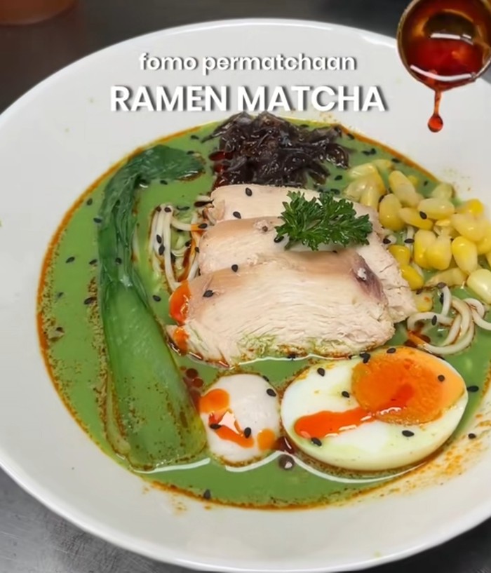 Matcha jadi primadona selama 2025. Banyak varian matcha, salah satunya ramen matcha/Foto: tiktok.com/syifaznta