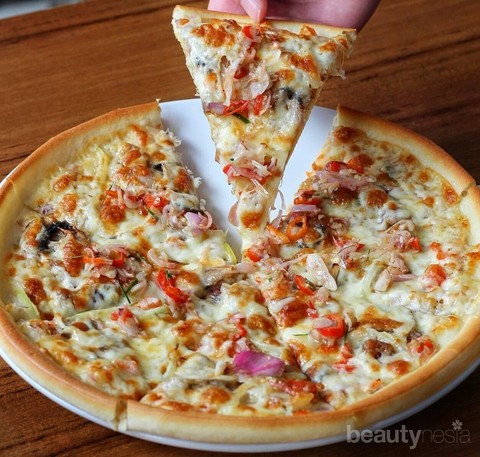 Biasanya pizza disajikan dengan penambahan toping paprika diatasnya. Tetapi rasa paprika kurang menciptakan rasa pedas. Tapi kali ini kamu bisa menikmati inovasi yang berbeda, yaitu pizza sambal matah. Perpaduan gurihnya keju, pedas sambal matah, dan lembut roti pizza membuat kamu semakin ketagihan untuk mencicipi pizza satu ini. Cobain yuk!