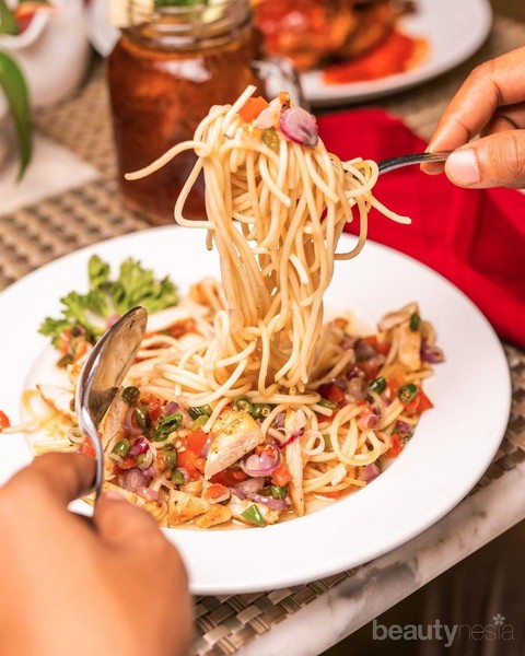 Perpaduan antara makanan Internasional dan tradisional menciptakan satu hidangan yang inovatif banget, Beautynesian! Apalagi pasta satu ini disiram dengan sambal matah dan diberi potongan daging bebek. Sensasi gurih dan pedas akan menggoyahkan lidah banyak orang. Cocok banget untuk kamu pencinta sambal matah.