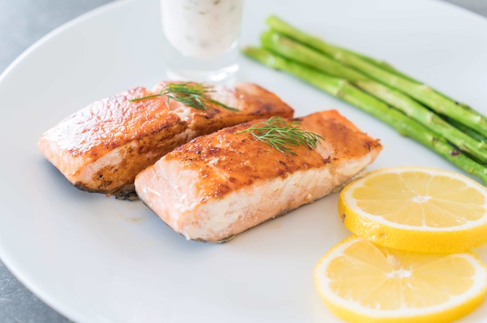 Salmon mengandung sekitar 20,3 gram protein setiap 100 gramnya, Beauties. Selain tinggi protein, ikan ini kaya akan asam lemak omega 3 yang baik untuk kesehatan jantung. Salmon juga mengandung vitamin D yang membantu tubuh menyerap kalsium dan fosfor, sehingga tulang menjadi lebih kuat dan persendian tetap terjaga.