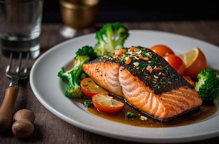 Ikan salmon panggang adalah pilihan sempurna untuk hidangan utama yang kaya nutrisi. Salmon dikenal karena kandungan asam lemak omega-3 yang sangat tinggi.