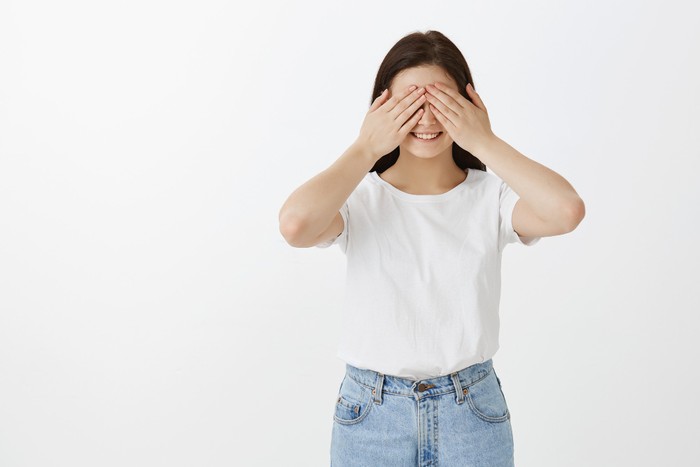 Setelah itu, tutup mata dan letakkan telapak tangan di atas tulang pipi. Lalu, tangkup tanganmu di atas mata dan mengambil napas dalam-dalam selama lima menit.