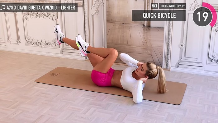 Pamela Reif dikenal dengan video workout-nya yang simpel namun cukup menantang. Tanpa banyak instruksi verbal, kamu cukup mengikuti gerakan yang ditampilkan, sehingga pas untuk kamu yang lebih suka langsung praktik tanpa banyak penjelasan.
