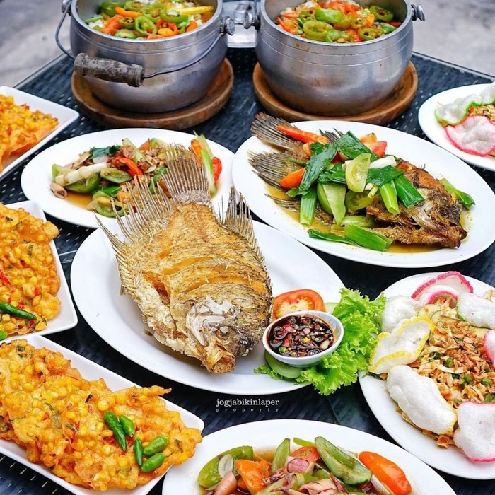 Restoran keluarga tapi estetik? Cuma ada di Lalawuh Sunda! Restoran ini rasanya menjadi restoran keluarga paling favorit di Jogja. Menu makanannya lengkap, restorannya pun luas dan mampu menampung banyak orang.Â