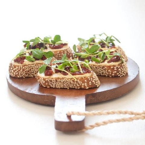 4. Hummus, Sun-Dried Tomato, and Pea Shoot Crostini
