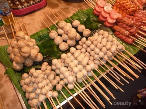 Tidak hanya di Indonesia, di Bangkok gorengan menjadi jajanan yang digemari banyak orang. Di Bangkok sendiri, gorengan banyak dijajakan di pinggir jalan. Mulai dari aneka daging ayam, telur, bakso dan sosis sapi. Selain itu ada juga sosis sapi yang gurih dan pangsit dengan isian ayam dan telur putih. Gorengan ini akan ditusuk seperti sate. Sate gorengan ini akan nikmat jika dicocol dengan saus Thailand yang rasanya pedas dan manis. Kamu dapat membeli beberapa tusuk dan berjalan menikmati kota Bangkok.