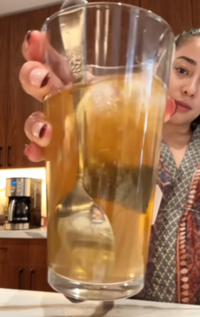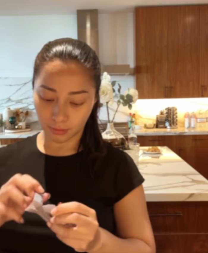 Setelah menyantap sarapan bagel, 2 butir telur, dan olives, Nikita meminum green powder. Green powder merupakan suplemen makanan yang terbuat dari buah-buahan, sayur-sayuran, alga, atau rumput yang kemudian diolah menjadi serbuk untuk menjadi minuman yang kaya akan kandungan vitamin seperti dilansir dari laman Mayo Clinic.