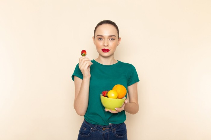 Ilustrasi memakan buah-buahan/Foto: Freepik.com/KamranAydinov