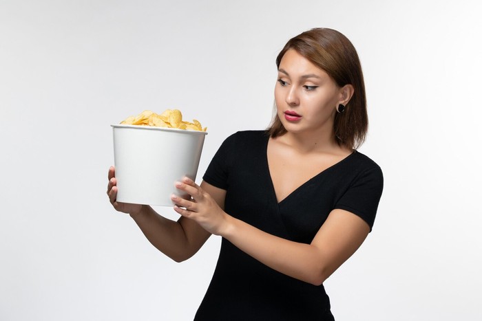 Ketika kamu mengonsumsi keripik langsung dari bungkusnya, es krim dari kotaknya, atau makanan pesan-antar langsung dari wadahnya, hal ini bisa membuatmu mengonsumsi makanan lebih banyak dari ukuran porsimu yang seharusnya.