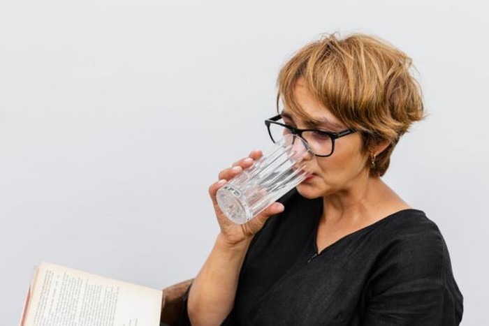 Ilustrasi minum air putih saat membaca buku /Foto: Pexels/Photo By: Kaboompics.com