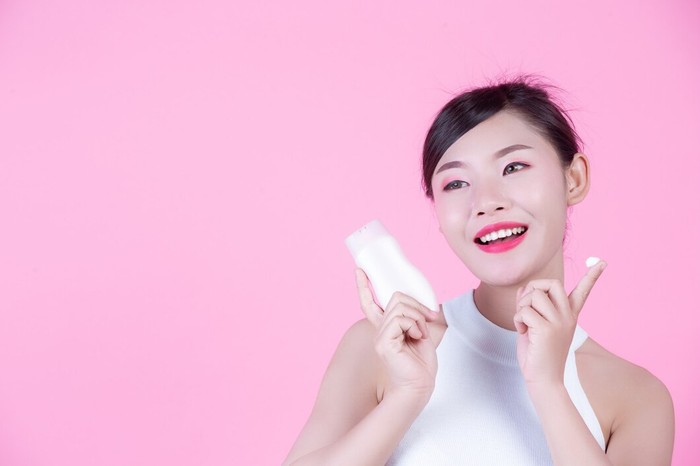 Ilustrasi perempuan memegang skincare/Foto: Freepik.com/jcomp