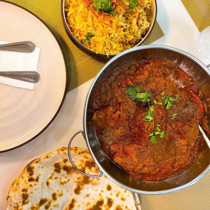 Restoran ini menawarkan aneka hidangan khas India dan Arab. Salah satu menu favoritnya adalah roti naan dengan daging panggang di atasnya.