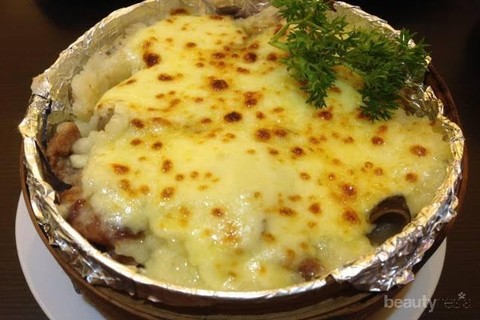 - Masukkan adonan nasi tetsebut pada loyang anti panggang. Kemudian taburi dengan keju parmesan atau cheddar dan panggang selama 20 hingga 30 menit.