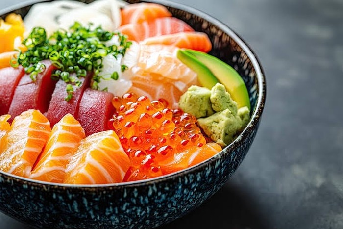 Chirashi adalah varian sushi lezat berupa semangkuk nasi yang diisi aneka topping seperti ikan, sayuran, dan telur. Ini seperti versi sushi bowl yang praktis.