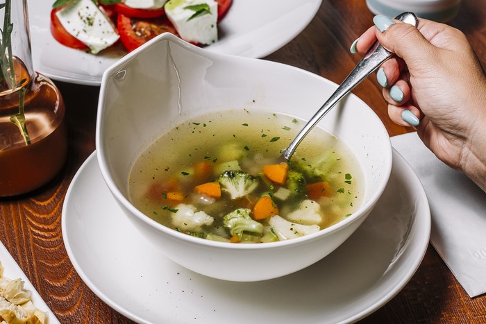 Sup atau kaldu tulang juga bisa menjadi pilihan yang pas untuk membantu melegakan tenggorokan yang sakit. Selain menghangatkan tenggorokan, kaldu mengandung asam amino, vitamin, dan mineral yang dapat melawan infeksi dan memberikan nutrisi untuk mempercepat pemulihan.