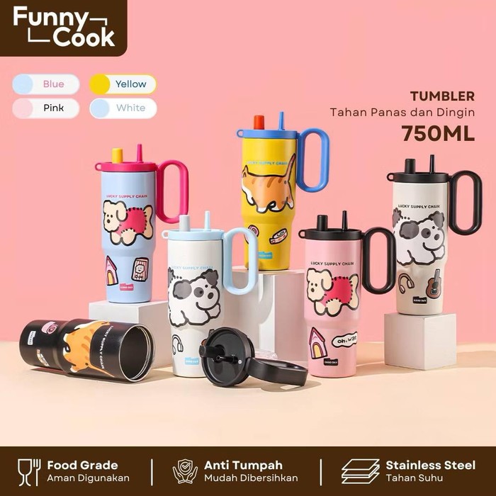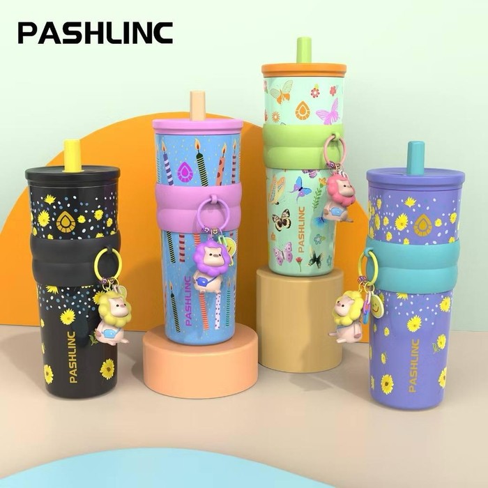 Tumbler gemas dari Pashlinc ini hadir dengan gambar dan warna yang cheerful, nih! Lebih uniknya lagi, produk ini juga terdapat keychain gemas yang akan bikin banyak orang salah fokus.