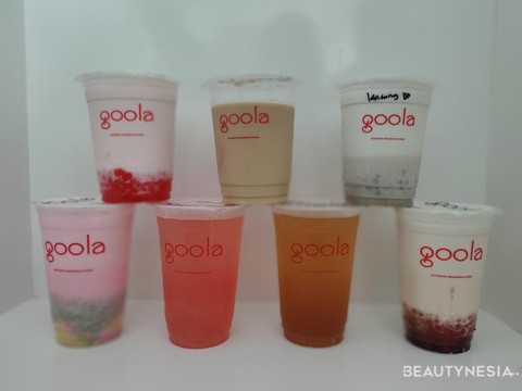 Saat ini, Goola sudah memiliki 22 menu minuman yang menarik. Mulai dari es kacang hijau, es doger, es terong Belanda, sampai es ketan hitam. Untuk harganya beragam, mulai dari Rp18 ribu sampai Rp30 ribu. Tersedia dengan dua ukuran, Medium dan Large.