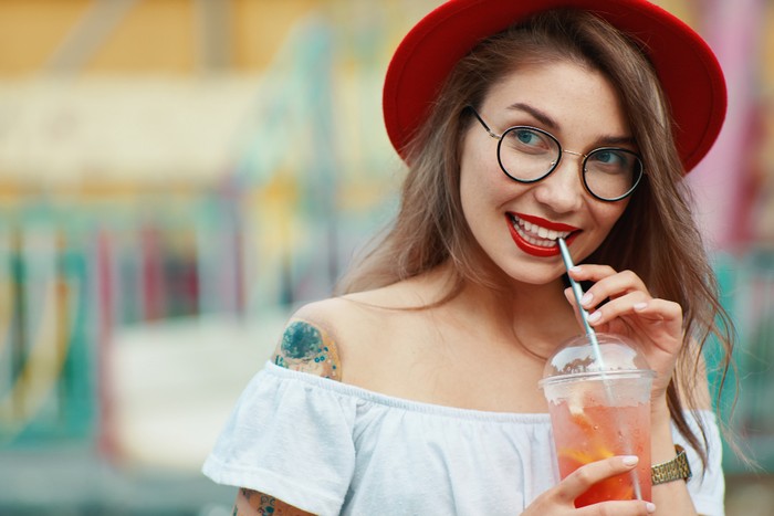 Menggunakan sedotan saat minum: bisa menambah timbulnya kerutan di area mulut