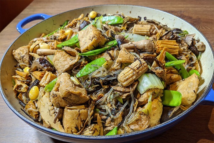 Saat Imlek, hidangan pertama yang dimakan biasanya seputar sayuran. Tradisi ini berasal dari Buddhis yang percaya bahwa sayuran dapat membersihkan tubuh dan jiwa.