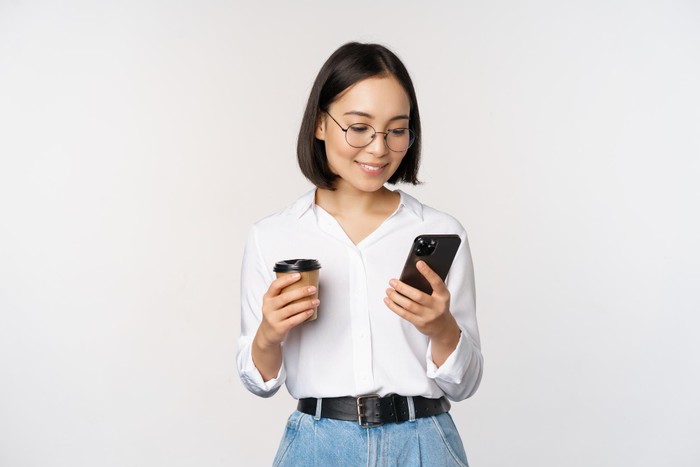 Ilustrasi perempuan dengan smartphone/Foto: Freepik.com/benzoix