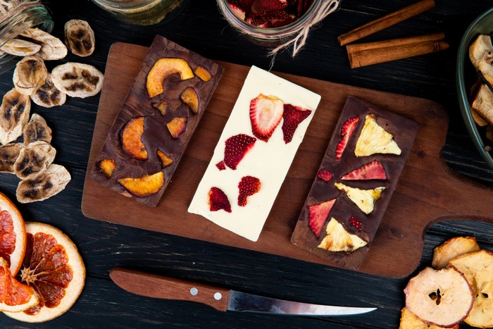 Kemudian, kamu bisa menyusun buah dalam cetakan coklat, sebelum akhirnya menyiram potongan buah dengan coklat hitam cair. Jika sudah begitu, kamu hanya perlu menyimpannya di lemari es hingga coklat mengeras.