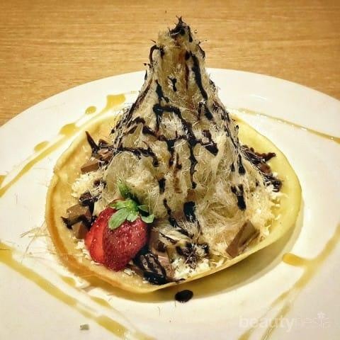 Kalau kamu bosan dengan topping dan rasa martabak yang biasa, cobalah sambangi salah satu kafe di Pondok Indah Mall Street Galery. Walaupun ada menu lain selain martabak, namun martabak selalu jadi primadona di sini. Salah satu menu yang paling laris adalah martabak marshmallow and jelly. Martabak manis yang diberi taburan marshmellow dan permen cokelat di atasnya ini memang cocok dinikmati bersama keluarga. Selain itu ada menu martabak yang lain seperti martabak apple crumble, martabak cheese cookies and cream, martabak monkey genius dan menu lainnya. Selain rasanya yang unik, tampilannya pun akan membuatmu terpesona. Kalau kamu penasaran akan rasanya, cepat sambangi The Playground di Mall Pondok Indah Lt G.