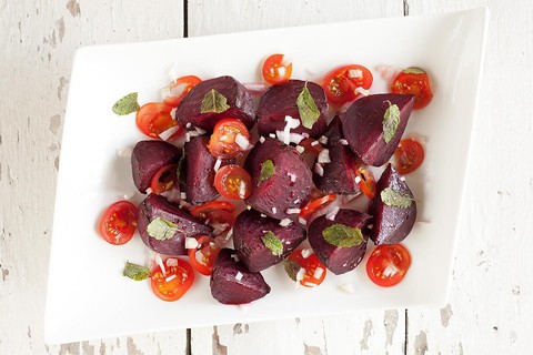 Caranya, potong buah bit lalu bumbui dengan minyak zaitun dan garam kemudian panggang menggunakan oven selama satu jam. Jika buah bit sudah matang, campurkan dengan potongan tomat yang kemudian diaduk bersamaan dnegan minyak zaitun, garam dan lada.