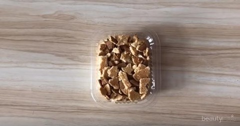 2. Masukan biskuit regal yang sudah dihancurkan tadi ke dalam box
