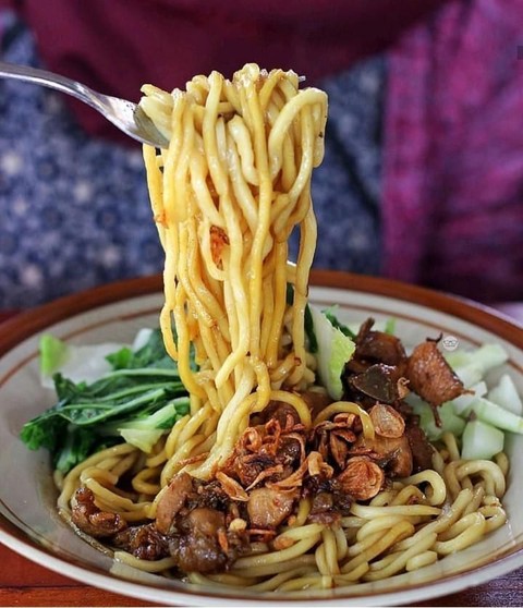 Yup benar !, mie ayam ini dihidangkan tanpa kuah, alias goreng. Ukuran mie-nya besar dan padat dengan tekstur yang super kenyal, perpaduan yang pas dengan sayur sawi dan potongan daging ayam. Jika dimakan ada rasa gurih, manis, asin dan acar timun yang segar. Taburan bawang gorengnya juga kriuk melimpah. Hmm… langsung ga tahan deh, kalau sarapannya seperti ini.