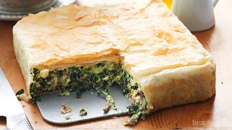 Tidak lengkap rasanya kalau tidak menyebutkan makanan khas Yunani yang juga menggunakan keju feta, keju susu kambing khas dari Yunani. Pie ini menggunakan isian bayam dan keju feta yang sangat cocok untuk menu vegetarian.