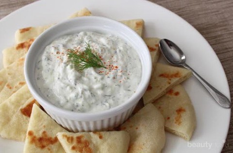 Bisa disajikan sebagai makanan pembuka ataupun saus celupan, tzatziki menggunakan yoghurt Yunani sebagai bahan utamanya yang dicampur dengan bawang putih, lemon, ketimun, minyak zaitun dan sedikit garam. Biasanya disajikan dengan roti pita hangat sebagai pendamping.
