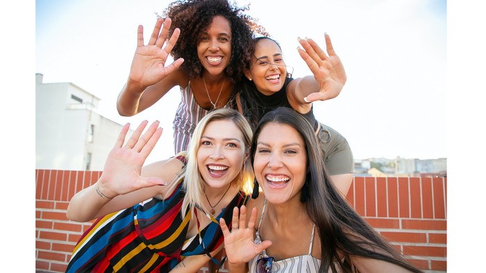 Ilustrasi dua orang perempuan yang terlihat sedang bahagia.