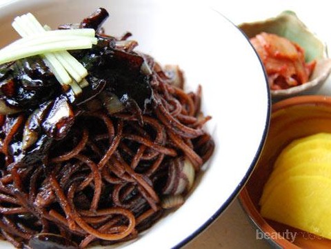 Jajangmyeon merupakan mie yang berwarna hitam. Jika kamu penggemar K-Drama tentunya sudah tak asing lagi dengan mie yang satu ini bukan? Jajangmyeon ini juga sering dijuluki mie kedelai hitam. Beberapa drama Korea yang mehadirkan makanan ini di antaranya Let's Eat, Coffee Prince, Full House, dan drama-drama lainnya.
