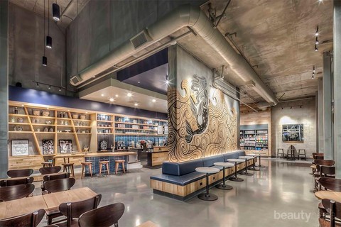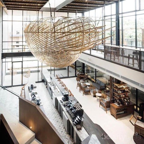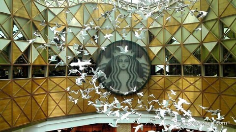 Starbucks ini hadir dengan ornamen uniknya yakni burung putih, cannopy yang berbentuk seperti ombak serta atas kacanya yang berbentuk kubah. Selain itu, detail bentuk pada dindingnya juga menambah keindahan dan keunikan gerai ini ya. Dijamin, kamu akan menolak pulang jika berada di gerai Starbucks ini.