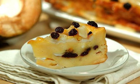 4. Masukkan adonan ke dalam cetakan dan taburi dengan kismis.