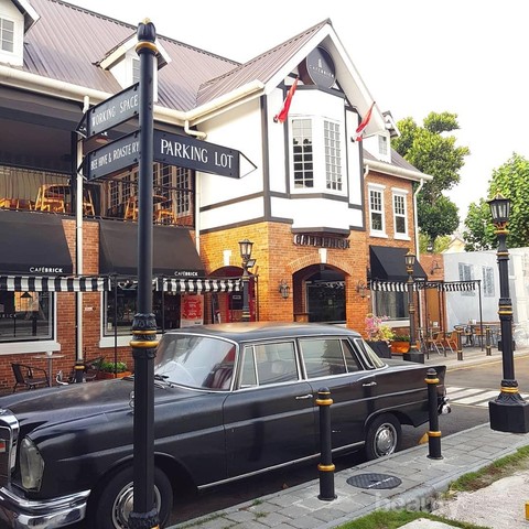 Cafe Brick memiliki tema vintage British. Kamu akan disuguhi suasana Eropa Klasik seperti perpaduan dekorasi berbahan kayu, dinding batu bata dan beberapa ornamen barang antik. Bukan hanya di dalam kedai, tetapi kamu juga akan menemukan spot cantik sebelum masuk ke dalam seperti boks telepon merah, mobil klasik, sepeda unik, keranjang bunga dan lampu lalu lintas seperti di Inggris.