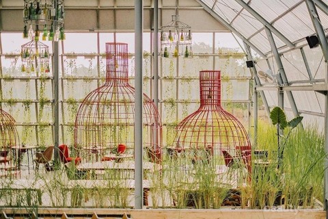 Disini kamu bukan hanya dapat menikmati kopi tetapi juga sajian makanan lainnya seperti western, asia ataupun lokal. Jadi untuk kamu yang ingin nongkrong bareng teman juga lebih enak untuk memiliki makanan disini. Dan disini kamu akan merasakan sensasi makan di rumah kaca, konsep dari kedai kopi ini adalah rumah kaca yang luas, bukan hanya itu kamu juga dapat berfoto dengan mobil klasik berwarna emas, dan yang paling special meja dan bangku dihiasi dalam sangkar burung. Jadi kamu berasa ngopi di dalam sangkar burung. Pastinya keren banget buat feed Instagram.