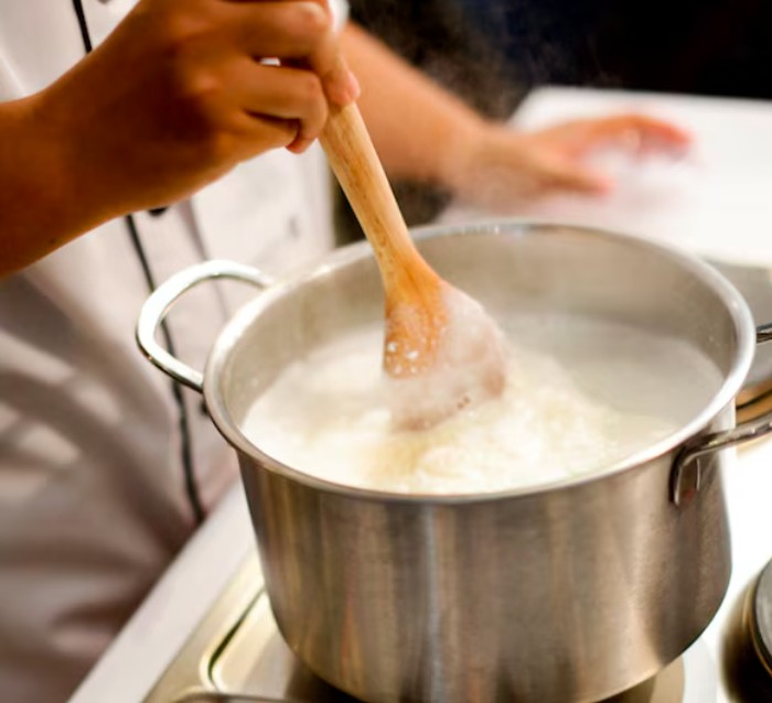- Panaskan Susu: Tuang susu ke dalam panci bersih, lalu panaskan dengan api sedang sambil terus diaduk perlahan. Tunggu hingga mendekati mendidih (sekitar 80–85°C). Tujuannya adalah untuk membunuh bakteri liar yang mungkin ada, dan menyiapkan kondisi ideal buat bakteri baik nanti bekerja.
