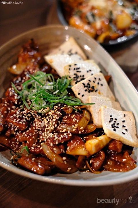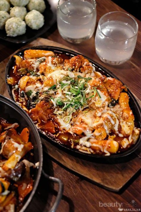 Menu yang satu ini bisa dibilang sebagai makanan Korea street food, namun dengan penyajian yang berbeda. Jika biasanya tteokbokki disajikan bersama kentang atau odeng, kali ini disajikan bersamaan dengan seafood dan keju. Tapi jangan tanya lagi soal rasanya Ladies. Dijamin enak dan super pedas.