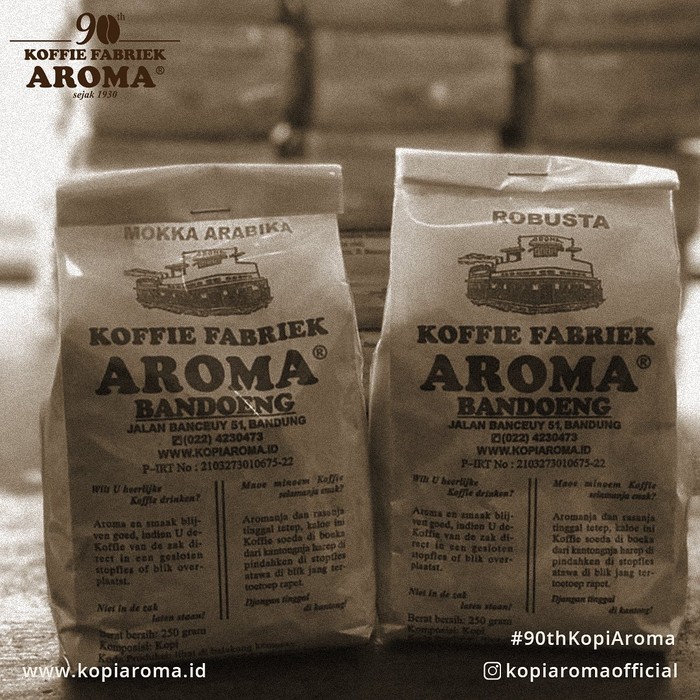 Kopi Aroma menjadi kopi pilihan dan legendaris dari Bandung hingga saat ini karena rasanya yang enak, beraroma harum, aman bagi lambung dan harga terjangkau. Sehingga Kopi Aroma juga bisa dijadikan sebagai oleh-oleh dari Kota Kembang. Terdapat dua pilihan produk dari Kopi Aroma, yaitu Mokka Arabika dan Robusta.Â